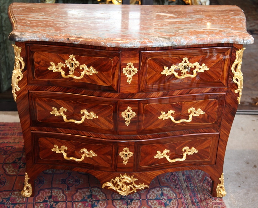 Petite commode tombeau en marqueterie d'époque Louis XV estampillée de Hedouin