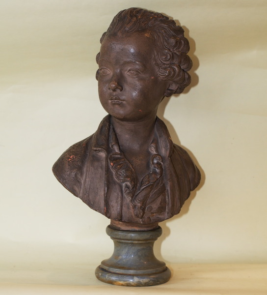 Fernand CIAN 1886-? "Portrait en buste de jeune homme" épreuve en terre cuite signée, socle piédouche en marbre bleu turquin