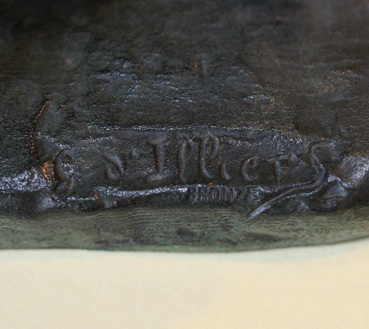 Gaston d'ILLIERS 1876-1932 "Piqueux à cheval" épreuve en bronze patine brun vert, signée sur la terrasse.
