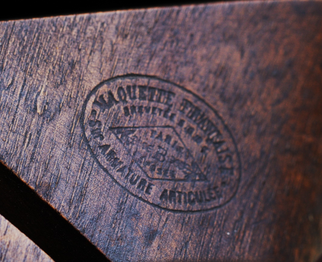 Mannequin d'atelier Cheval et son cavalier breveté fin XIX Paris "Maquette française sur armature articulée, breveté SGDG, bois ciré et lanières de cuir pour l'encolure.