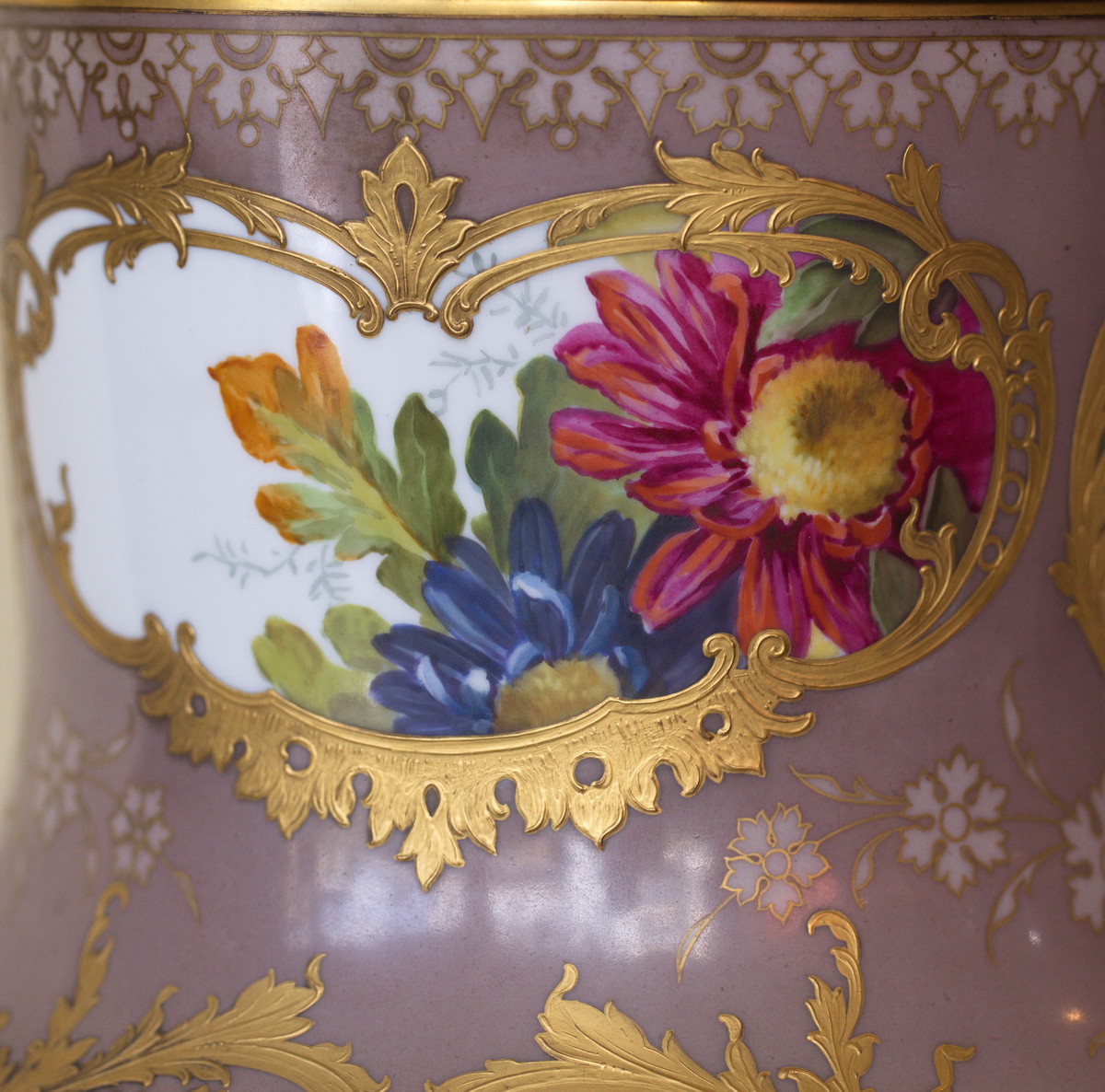 Manufacture de Pirkenhammer, Bohème vers 1890, important vase monté en lampe, en porcelaine décor de fleurs en reserve