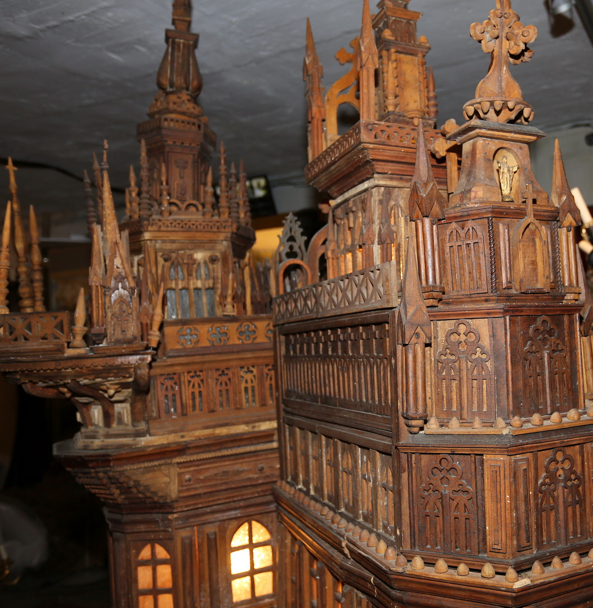 Maquette de monument "Cathédrale imaginaire" bois tourné, découpé , ajouré et sculpté ART populaire circa 1880.