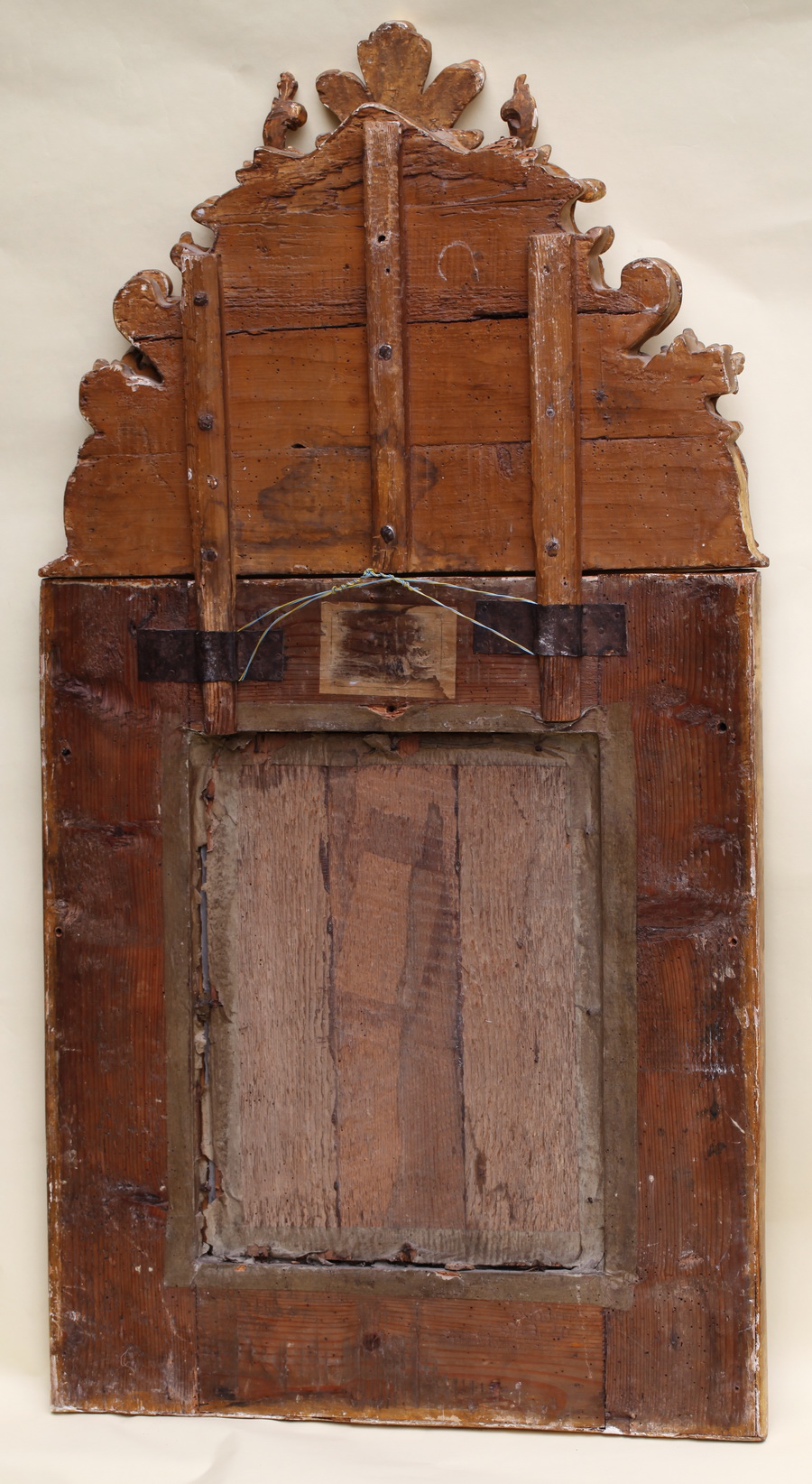 Miroir à fronton et pareclose en bois doré et sculpté d'époque Régence