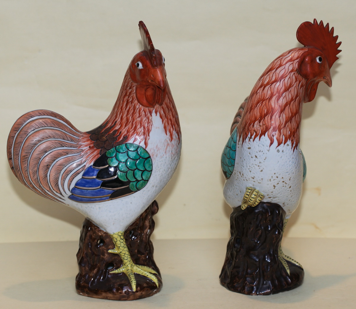 > Accueil > Porcelaines-faïences > Paire de coqs CHINE XIX