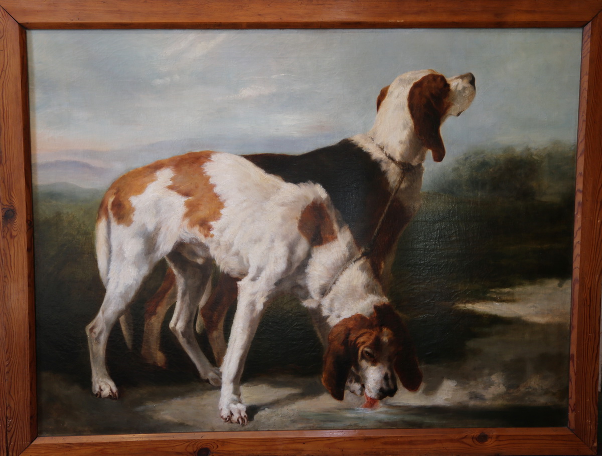 Louis Godefroy JADIN 1805-1882 attribué à "portraits de chiens de chasse, Foxhound" paire d'huiles sur toile (Durand Ruel 1 rue de la Paix à Paris) dans leurs cadres en pichepin