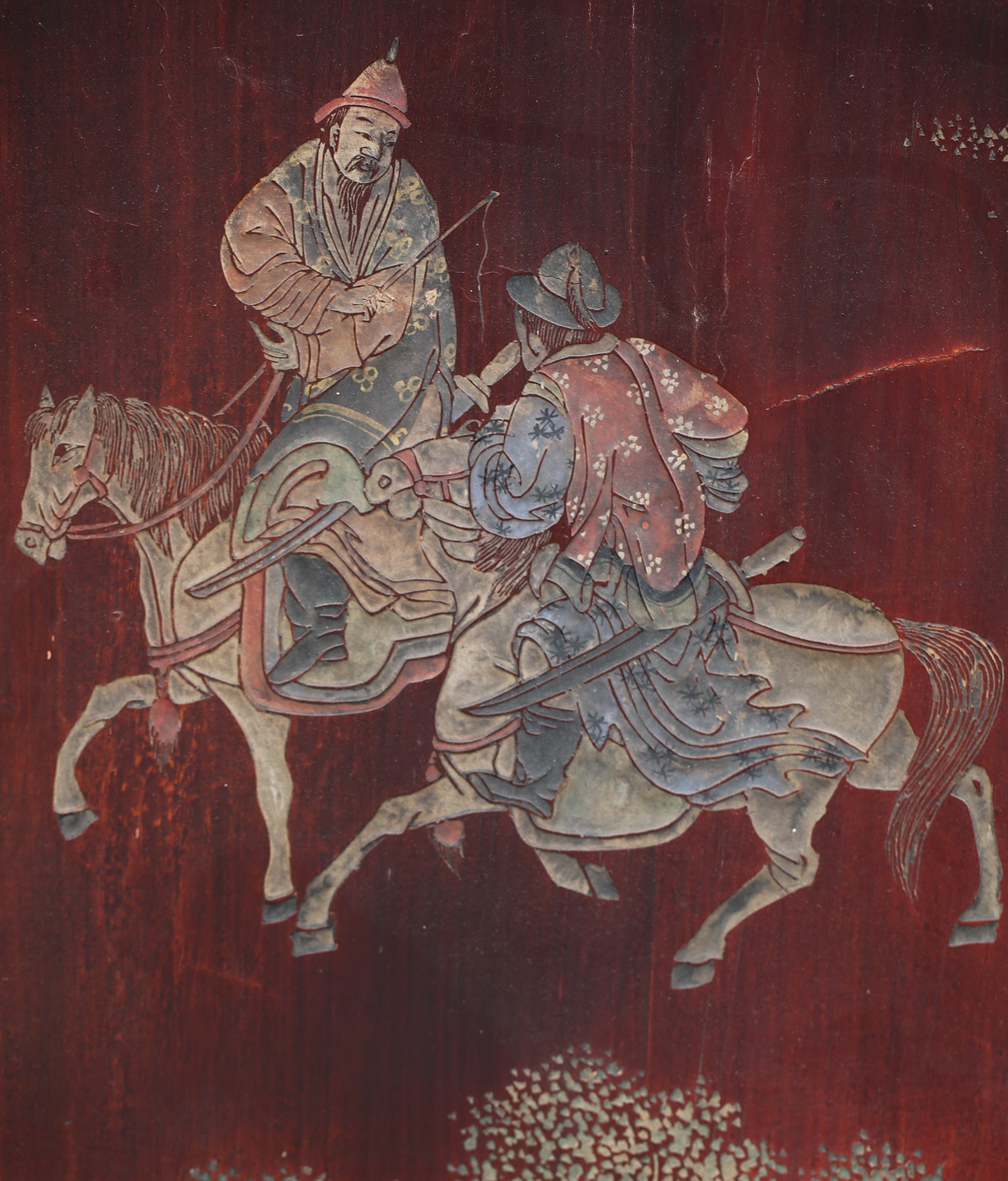 Les tableaux du paravent représentent des scènes qui ont eu lieu à l'occasion d'une fête anniversaire de Kwotse-Yn=, né sous la dynastie des Thang il était gouverneur civil et militaire du nord quand il reçut l'ordre de pacifier le Tartare et la Birmanie, mission qu'il accomplit de façon magistrale. Aussi l'empereur Thang Uyen Trong le nomma Grand Chancelier de l'Empire avec un pouvoir illimité, il tenait le sort de tous les mandarins militaires et civils entre ses mains, il fut par la suite élevé au titre de Prince de Fan-Yang.