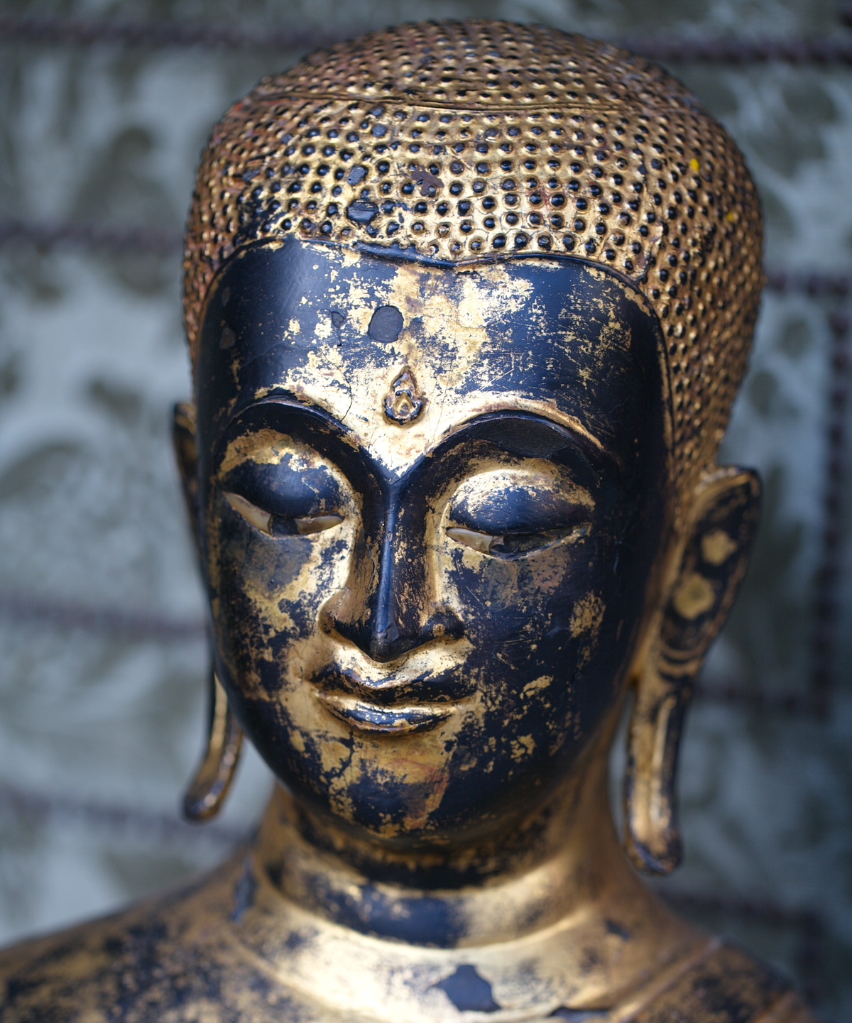 Exceptionnelle paire de Orants en bronze patiné et doré à la feuille d'or, Siam fin XVIIIème (collection comte de Maranche)