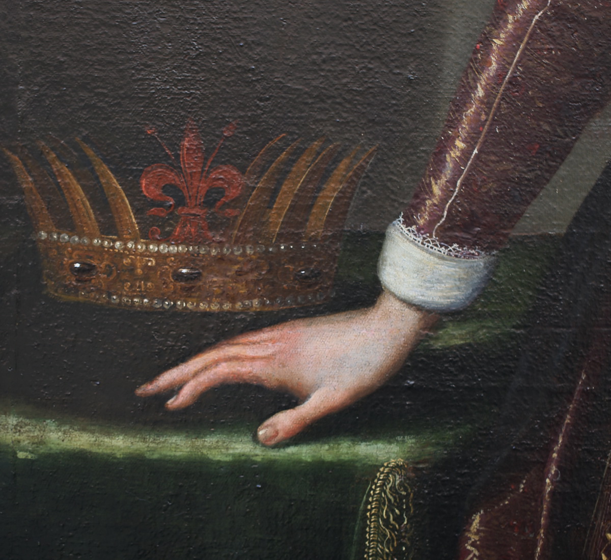 Valore CASINI attribué à, Ec. Ital du XVIIème "Portrait en pied de Ferdinand II de Médicis" huile sur toile, châssis changé, important cadre en bois mouluré 206x145
