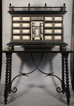 J.V MOLERO Cabinet et son piètement en placage d'ébène et plaques d'ivoire, décor de chasse, travail espagnol de style XVIIe, circa 1900, signé sur la porte centrale.