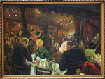 Jules René HERVE 1887-1981 "la guinguette" huile sur toile signée en bas à droite et contre signée au dos étiquette d'exposition, cadre bois et stuc doré.