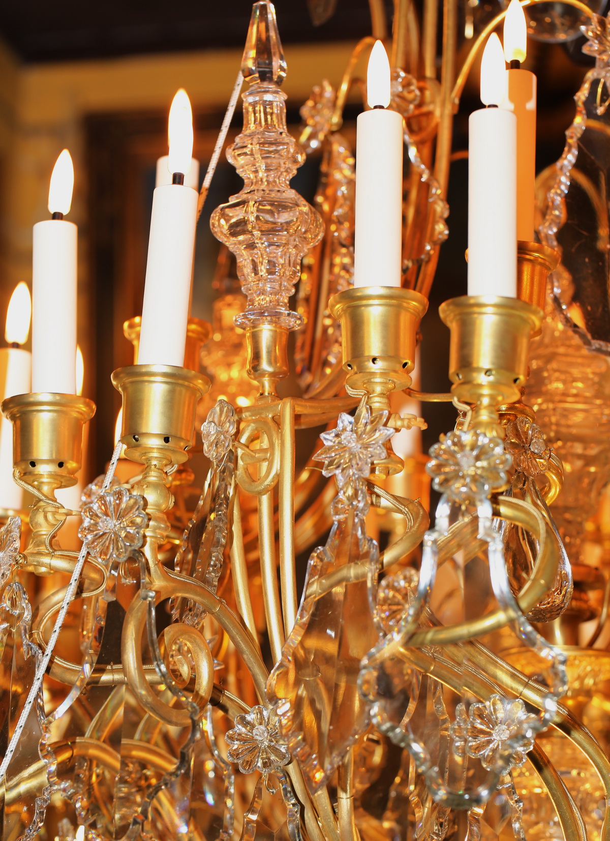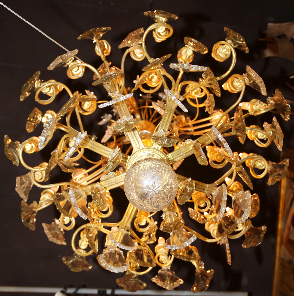 Important chandelier 30 lights cage gilded bronze, "bull's eye", with crystal pendants Louis XV style late nineteenth century old gas (model Baccarat)