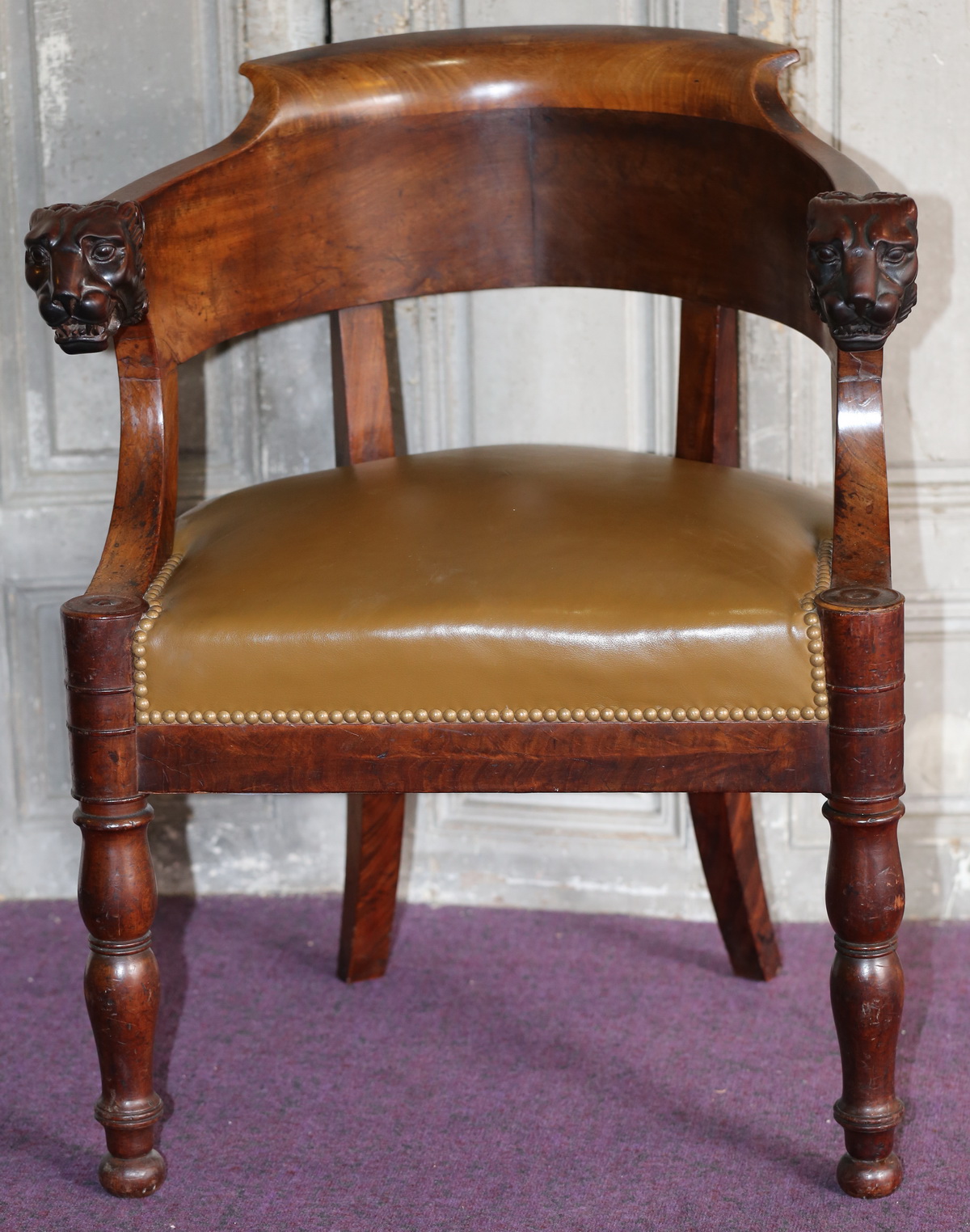 Desk chair in mahogany Empire terminated to file gondola lion muzzles, forefeet Jacob sword in the back