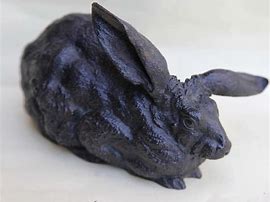 Ferdinand PAUTROT 1832-1874 "Rabbit flanders" bronze with silver patina on marble base red cherry paperweight.