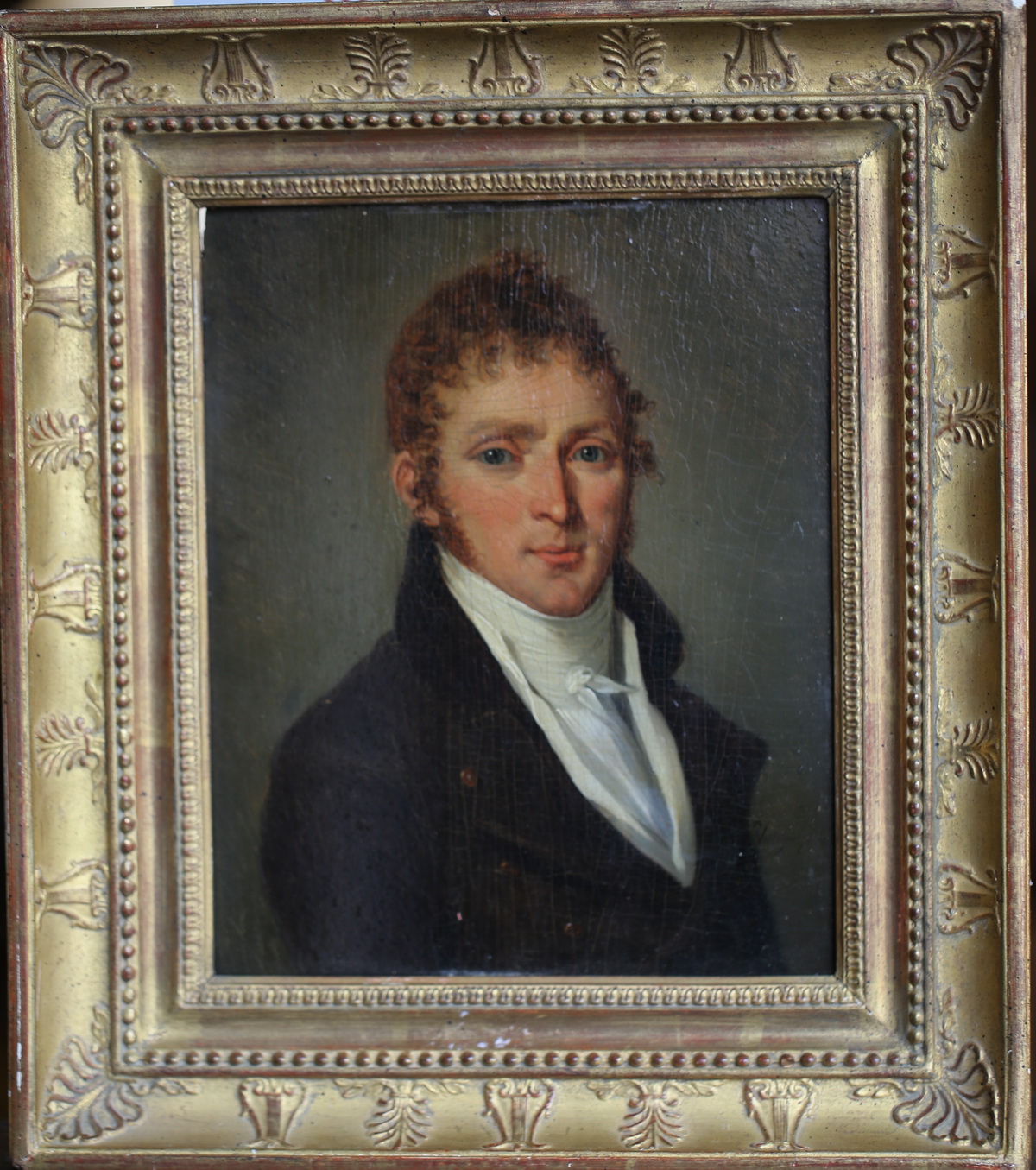 Henri Nicolas VANGORP 1756-1819 "Antoine lafontaine at 22" Middle panel oil on the right, empire style wooden frame and gilded stucco.