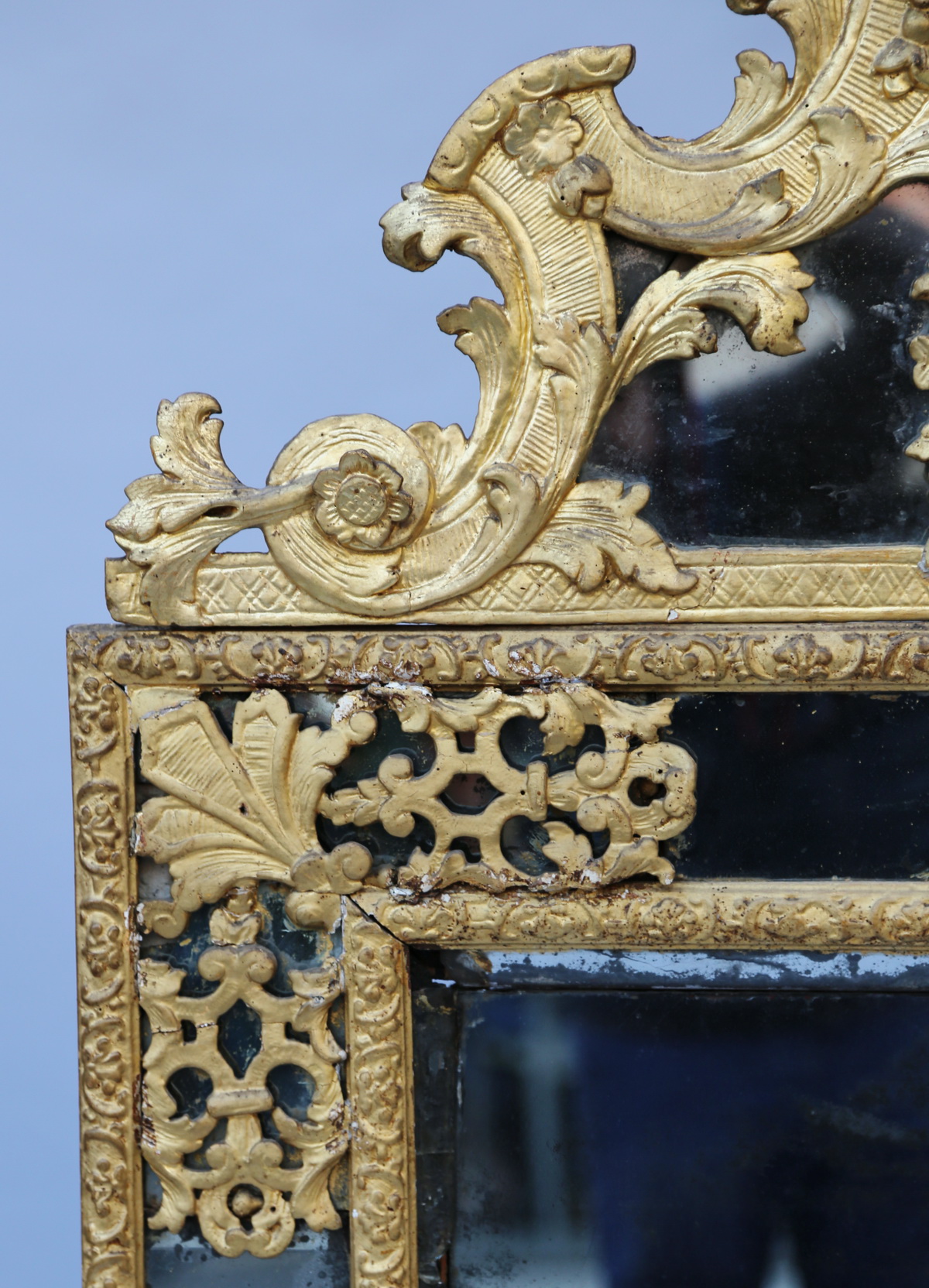 Mirror with bead gilded carved topped with a pediment with mask, Regency period (some misses)