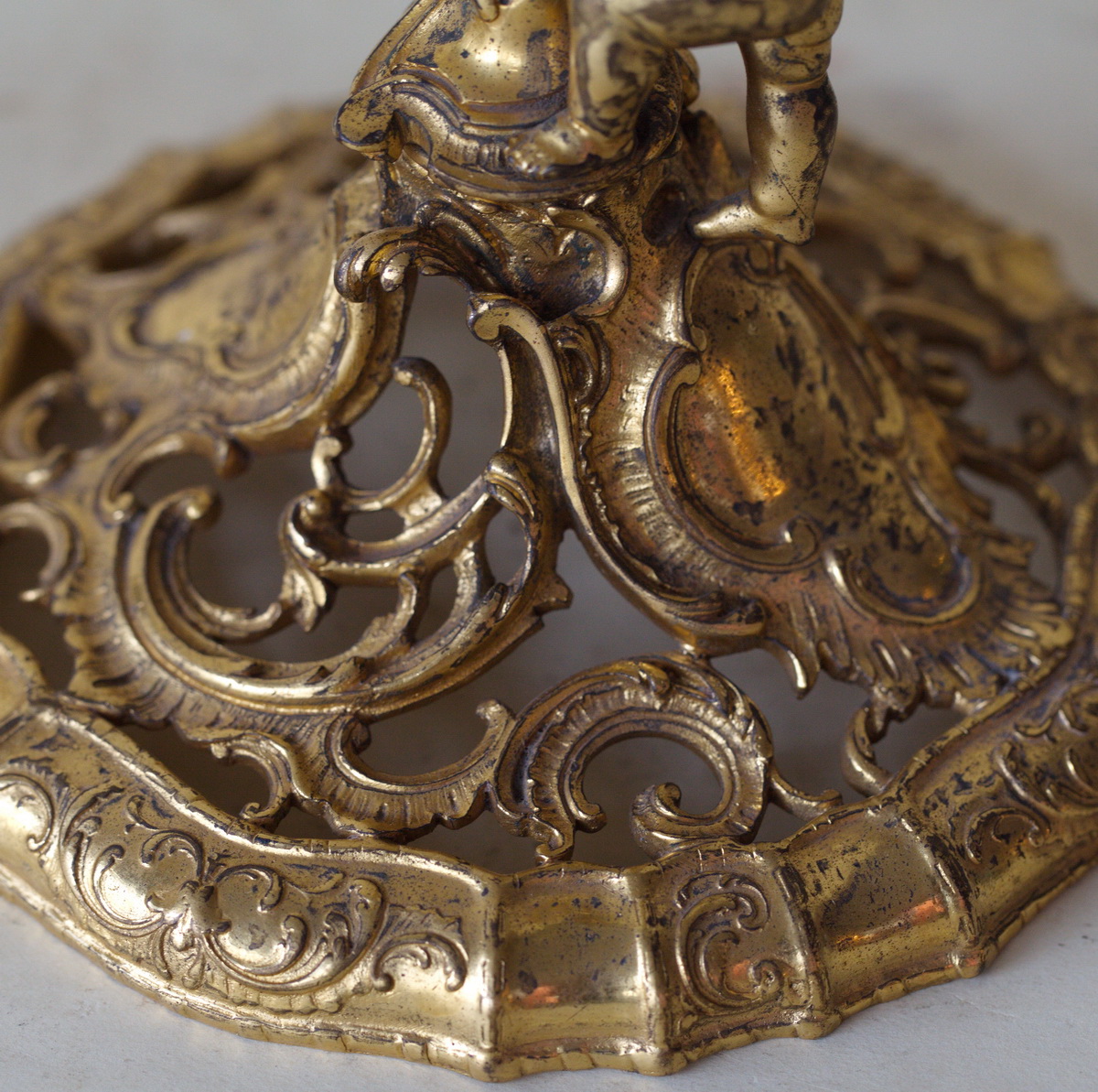 Pair of gilt bronze candlesticks, openwork base, working German Regency period