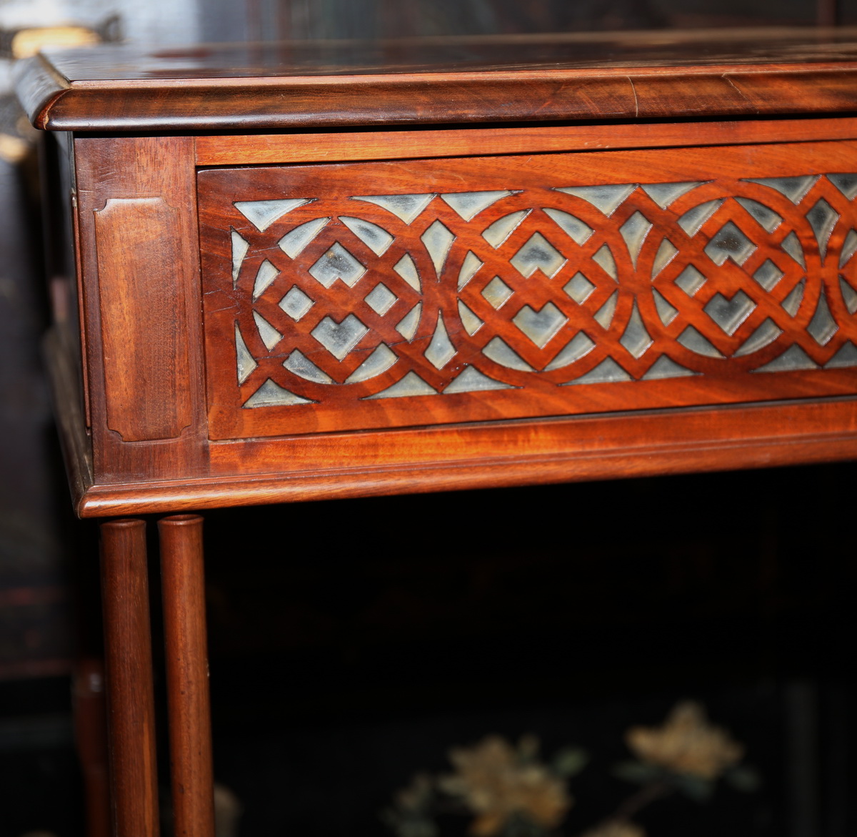 pair of mahogany consoles opening with a drawer in belt interlaced decorations on a mirror background nineteenth time