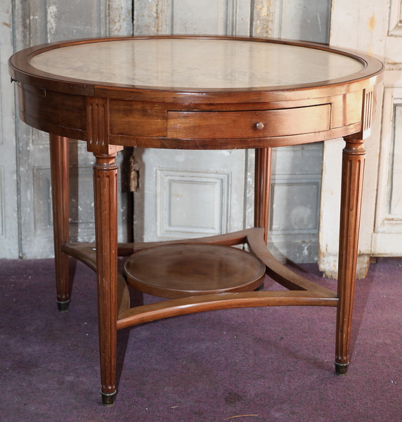 Table mahogany bouillotte Louis XVI style spacer and white marble set, 2 drawers and two drawers, late nineteenth time